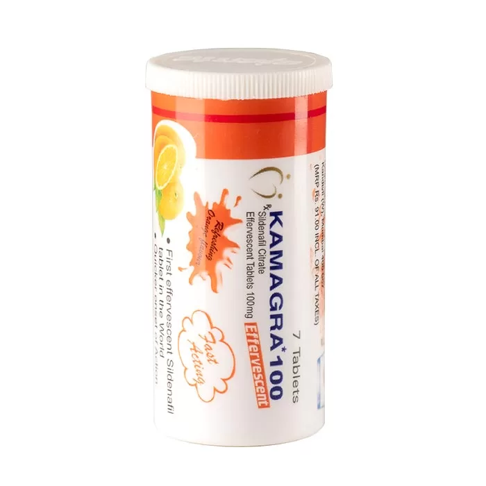 Sildenafil effervescent tablets substitute Viagra in 100% and is a generic drug that is manufactured in the form of effervescent tablets. Each tablet contains 100 mg of sildenafil. Orange-flavored effervescent tablets just need to be dissolved in water and after that it can be consumed. That is why the active ingredient of Kamagra is absorbed faster and reaches its effect in a shorter time.
